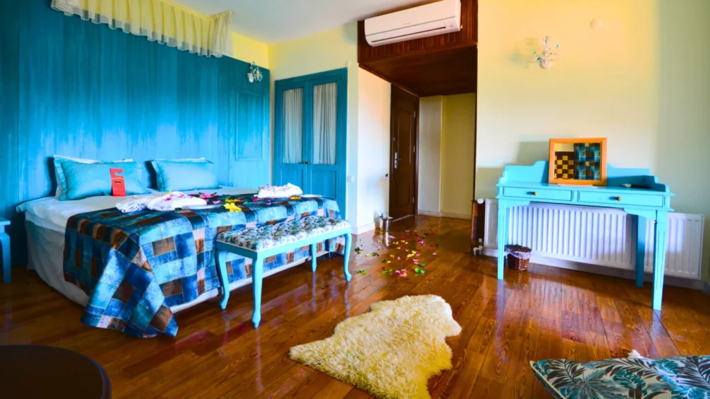 Otel, misafirlere özel tasarlanmış odalarıyla konforlu bir konaklama deneyimi sunuyor. Her odanın penceresinden Kazdağları’nın dört mevsim değişen muhteşem silueti görünüyor; sabah güneşiyle uyanmak ya da akşam serin dağ havasında kitap okumak burada başka bir anlam kazanıyor.